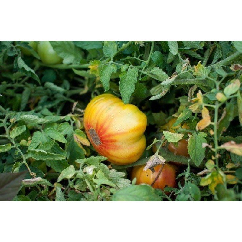 Charming 700-gram beefsteak fruits ripen on tall 1.5-meter bushes. An interesting taste with a citrus tinge will attract the attention of tomato gourmets.